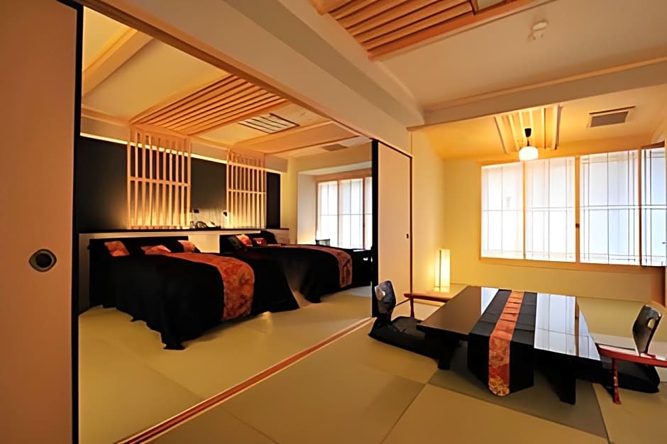 The family room offers air conditioning, tatami, as well as a private bathroom boasting a bath and a shower. The family room features a seating area, a wardrobe, a safe deposit box, an electric kettle and a flat-screen TV. The unit has 1 futon.